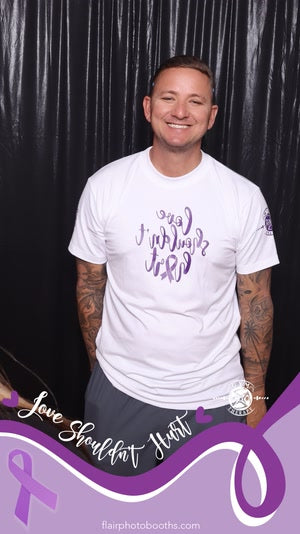 Love Shouldn’t Hurt shirts are the perfect combination of casual + comfort while supporting Domestic Violence Awareness. Whether you want to lounge or lift these have you covered. The perfect buttery soft feel, lightweight & high quality.